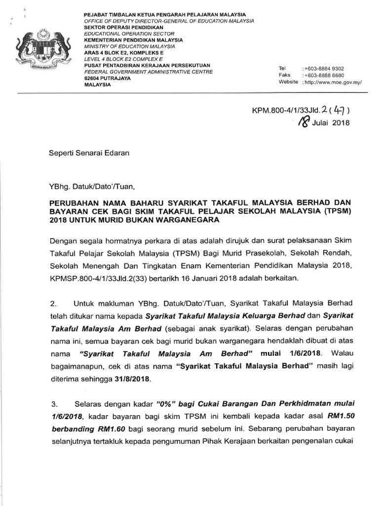 2018 Surat Kpm Tukar Nama Tpsm Takaful Pdf